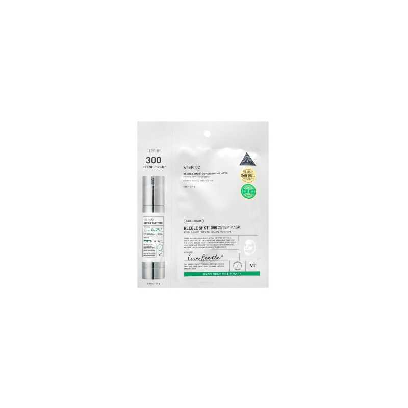 VT Cosmetics Reedle Shot 300 dvoufázová pleťová maska 2 Step Mask je ideálním řešením pro komplexní péči o pleť. Tato inovativní maska, určená pro všechny typy pleti, včetně citlivé, poskytuje hloubkovou regeneraci a výživu. Dvoufázový systém zajišťuje intenzivní hydrataci díky kyselině hyaluronové a zpevnění pleti pomocí kolagenu. Niacinamid rozjasňuje pleť a sjednocuje její tón, zatímco peptidy podporují regeneraci buněk. Extrakt z aloe vera zklidňuje a hydratuje. Pravidelným používáním dosáhnete zdravého a zářivého vzhledu pleti, ideální pro večerní relaxaci po náročném dni.