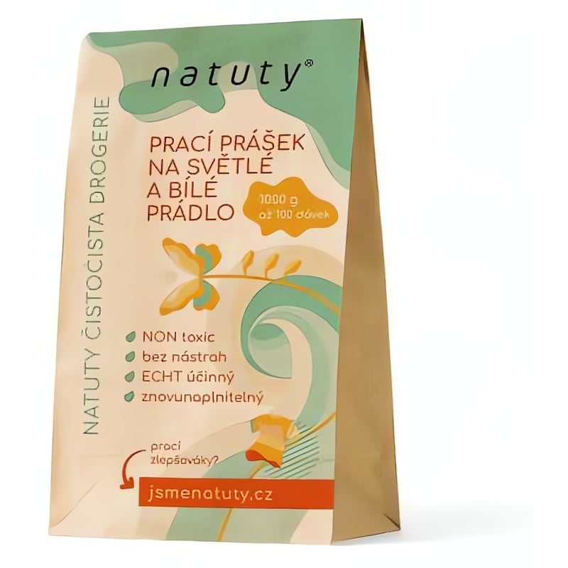 Vývoj a výroba Natuty Pracího prášku na bílé a světlé prádlo probíhá s maximálním důrazem na kvalitu a ekologické standardy. Každý krok, od výběru surovin po finální balení, je pečlivě kontrolován. Hlavní složkou je kokosové sodné mýdlo, které zajišťuje účinné praní bez dráždivých látek. Prášek je koncentrovaný a vydrží až 100 pracích cyklů, což šetří nejen peníze, ale i životní prostředí. Všechny ingredience jsou 100% biodegradabilní a obal je recyklovatelný. Tento produkt je ideální pro citlivou pokožku a přispívá k udržitelnosti.