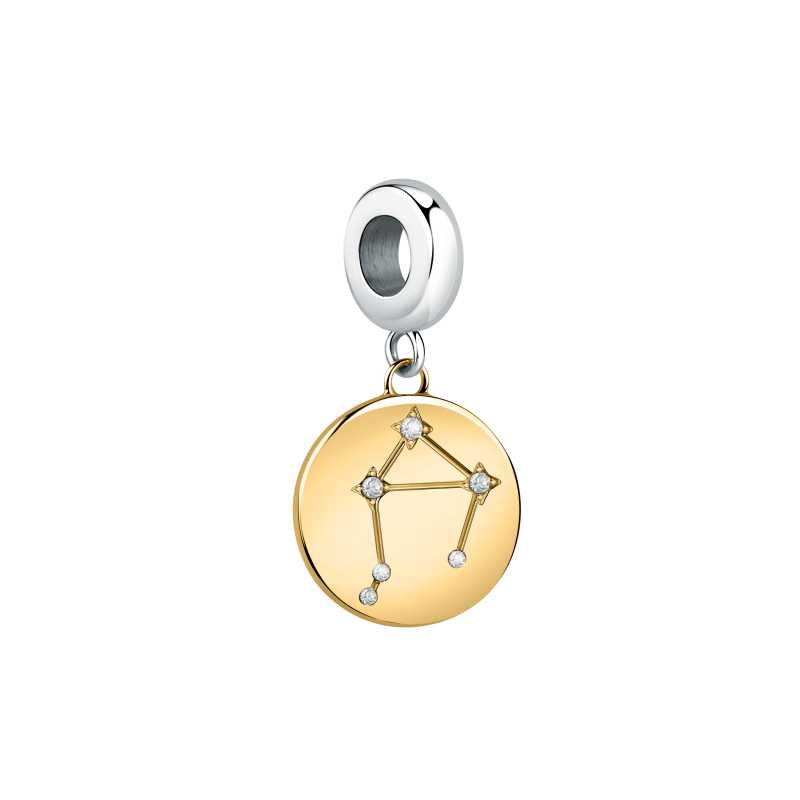 Nadčasový bicolor přívěsek Váhy Drops od značky Morellato přináší eleganci a osobitost každému šperku. Tento šperk, vyrobený z kvalitní oceli a zdobený čirými krystaly, zobrazuje souhvězdí Vah. Na zadní straně přívěsku je dekorativní nápis „Libra“, který dodává na výjimečnosti. Díky oblíbenému pozlacení žlutým zlatem se skvěle hodí jak na náramky, tak na náhrdelníky a hodinky z kolekce Drops. S širokou nabídkou přívěsků si můžete vytvořit šperk přesně podle svého vkusu. Vysoká kvalita zpracování a originální design činí z tohoto přívěsku ideální volbu pro každého, kdo hledá stylový doplněk.