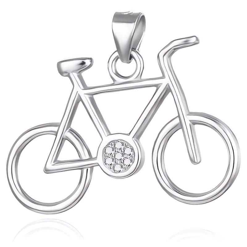 Přívěsek ve tvaru jízdního kola od značky Agato je ideálním doplňkem pro všechny milovníky cyklistiky. Vyrobený ze sterlingového stříbra s rhodiovaným povrchem, zajišťuje odolnost proti alergiím a dlouhotrvající lesk. Drobné čiré zirkony dodávají šperku jedinečný nádech elegance. Jeho rozměry 1, 5 x 1, 8 cm činí z přívěsku skvělou volbu pro každodenní nošení, ať už se jedná o sportovní styl nebo každodenní outfit. Přívěsek je dodáván v originálním balení a skvěle se hodí k dokoupení stříbrného řetízku. Tento šperk je nejen módní záležitostí, ale také osobním vyjádřením vašich zálib.