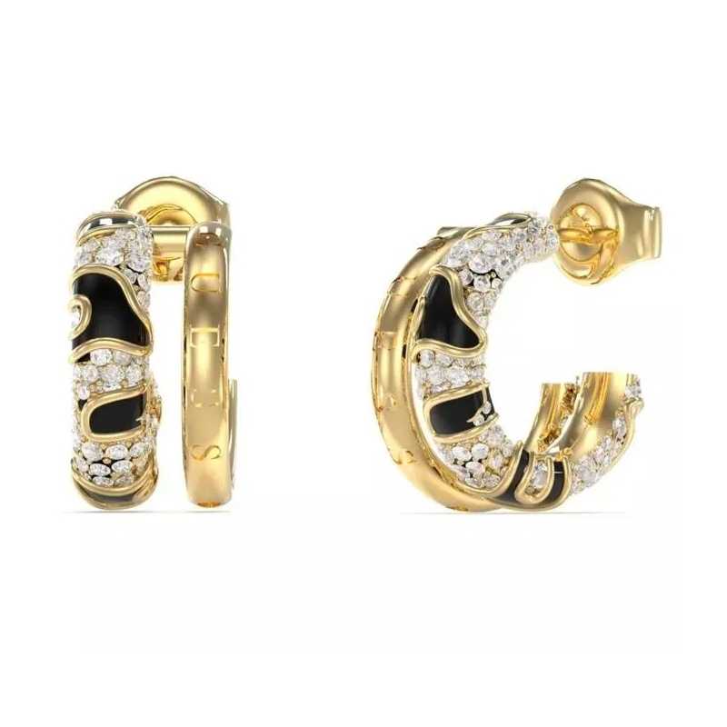 Kruhové náušnice Fabulous Me od značky Guess přinášejí jedinečnou kombinaci elegance a moderního designu. Vyrobené z kvalitní oceli s pozlaceným PVD povlakem, tyto náušnice zaujmou svým dvojitým půlkruhovým tvarem. Větší půlkruh je ozdoben černým smaltem a čirými krystaly, které dodávají šperku šmrnc a jiskru. Průměr náušnic činí 1, 5 cm, což je ideální velikost pro každodenní nošení i speciální příležitosti. Zapínání na puzetku zajišťuje pohodlné nošení po celý den. Ozdobte svůj outfit tímto originálním šperkem a podtrhněte svou přirozenou krásu. Dodávají se v originálním látkovém sáčku s logem značky, což činí z této náušnice skvělý dárek.