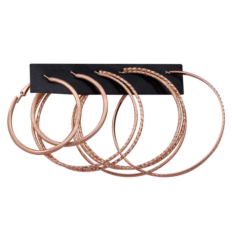 Luxusní sada kruhových náušnic v odstínu růžového zlata představuje elegantní doplněk pro každou příležitost. Tato precizně zpracovaná sada obsahuje tři páry náušnic s průměry 4, 5 cm, 6, 2 cm a 6, 3 cm, které skvěle doplní jakýkoliv outfit a dodají mu šmrnc. Minimalistický design bez kamínků zaručuje nadčasovost a univerzálnost, zatímco pozlacení růžovým zlatem umocňuje jejich luxusní vzhled. Náušnice jsou navrženy pro ženy, které chtějí podtrhnout svou osobnost stylem. Dodávají se v originálním balení, což z nich činí ideální dárek pro blízké nebo jako příjemné zpestření vlastního šperkovnice.