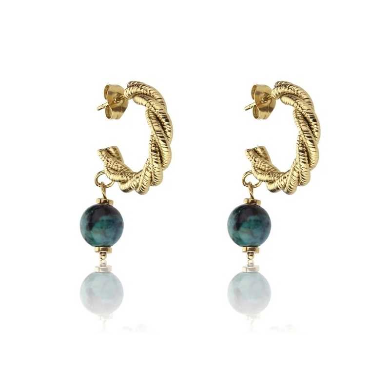Elegantní pozlacené náušnice Grace Green Earrings od značky Marc Malone přináší jedinečný styl a kvalitu do každého outfitu. Tyto náušnice vynikají svým krouceným designem a zeleným visacím korálkem ze syntetického kamene, který dodává šperku nádech originality. Vyrobeny z odolné oceli a pokovené zlatým PVD povlakem, zaručují dlouhou životnost a lesk. Výška náušnic 2 cm a klasické puzetkové zapínání zajišťují pohodlí při nošení. Tento šperk nejenže osvěží váš vzhled, ale také symbolizuje eleganci a ženskost, kterou si zasloužíte. Dodávají se v originálním balení, ideální jako dárek pro speciální příležitosti.