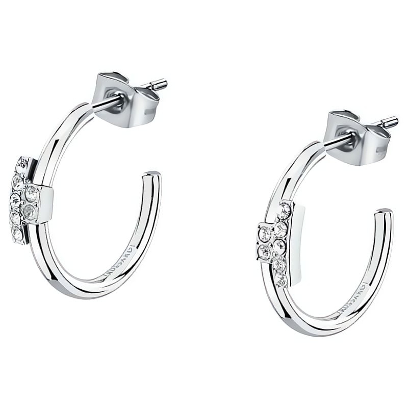 Ocelové kruhové náušnice se zirkony T-Logo od značky Trussardi přinášejí do každodenního stylu nádech elegance. S průměrem 1, 9 cm a jemným designem se stanou dokonalým doplňkem jak pro běžné nošení, tak pro speciální příležitosti. Lesklá ocel, zdobená čirými broušenými krystaly, symbolizuje čistotu a sofistikovanost, zatímco logo značky podtrhuje prestiž výrobku. Bezpečnostní zapínání na puzetku zajišťuje pohodlné nošení po celý den. Tento šperk, vyrobený s precizností v Itálii, osloví každou ženu, která si potrpí na kvalitu a styl. Uložte si je do své šperkovnice a vyjádřete svůj osobní styl s nádechem luxusu.