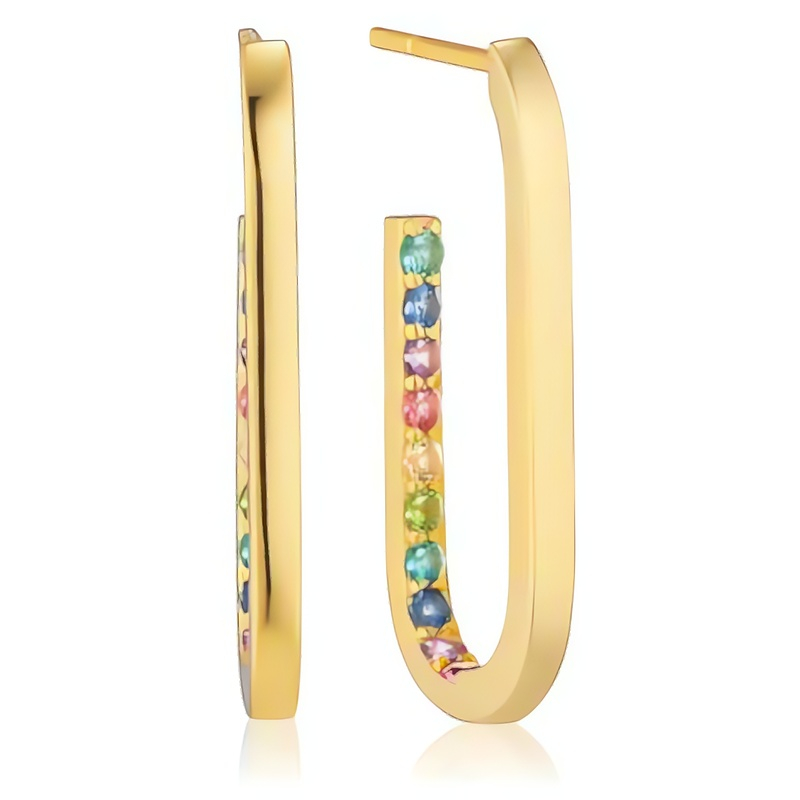 Pozlacené oválné náušnice Capizzi od značky Sif Jakobs jsou dokonalým doplňkem pro elegantní ženy, které chtějí vyniknout. Vyrobené z kvalitního stříbra ryzosti 925/1000 a pokryté 18k žlutým zlatem, tyto náušnice přinášejí do vašeho šatníku nádech luxusu. Vnitřní strana je osazena barevnými kubickými zirkony, které se třpytí při každém pohybu. Rozměr 2, 7 x 0, 2 cm a bezpečnostní zapínání na puzetku zajišťují pohodlí a bezpečnost nošení. Doplňte svůj outfit těmito šperky, se kterými se budete cítit sebevědomě a okouzlujícím způsobem. Šperk je dodáván v originálním balení, ideální i jako dárek.