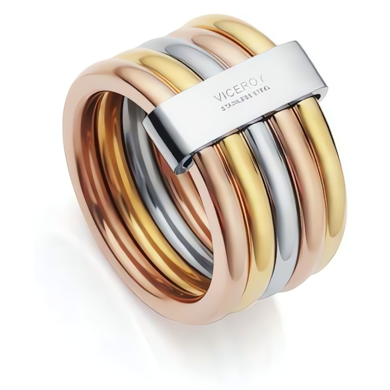 Luxusní tricolor prsten z oceli od značky Viceroy je dokonalým doplňkem pro každou ženu, která touží po elegantním a moderním šperku. Je vyroben z kvalitní oceli, částečně pozlacený růžovým a žlutým zlatem, čímž vyniká svým jedinečným třístupňovým designem. Tento prsten bez kamínků skvěle doplní jakýkoliv outfit, ať už se chystáte na pracovní schůzku nebo večerní událost. Lesklá povrchová úprava přidává na sofistikovanosti, zatímco tricolor kombinace barev zaručuje, že se stane středem pozornosti. Originální balení činí tento šperk ideálním dárkem pro vaše blízké.