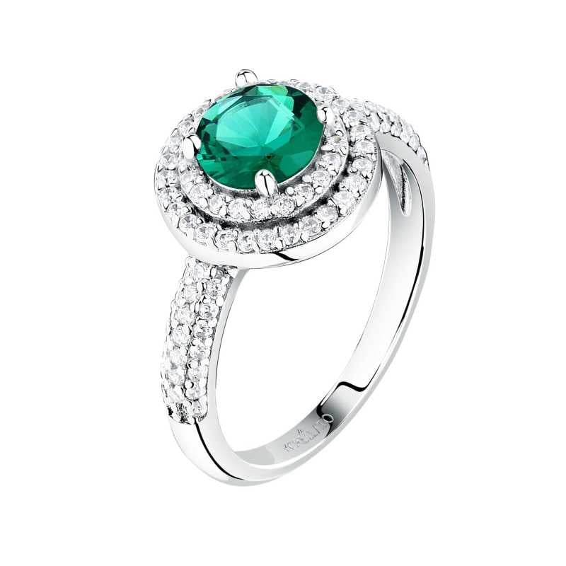 Oslnivý stříbrný prsten se zeleným zirkonem od značky Morellato je dokonalým doplňkem pro každou ženu, která touží po eleganci a šarmu. Vyrobený z recyklovaného sterlingového stříbra s rhodiovaným povrchem, tento prsten nejenom že snižuje riziko alergických reakcí, ale také zachovává svůj lesk po dlouhou dobu. Dominantní zelený kubický zirkon je obklopen čirými zirkony, které se třpytí a dodávají šperku jedinečný půvab. Tento klenot se skvěle hodí pro jakoukoliv příležitost a stane se nenahraditelným doplňkem vašeho outfitu. Prsten je dodáván v originálním balení, ideální jako dárek pro blízké.