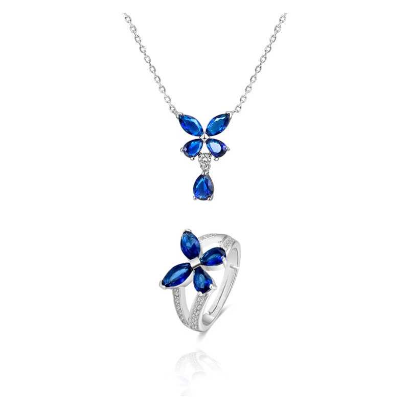 Stříbrná souprava šperků s květinovým designem od značky Beneto je dokonalým doplňkem pro každou ženu, která ocení eleganci a jemnost. Sada obsahuje náhrdelník o délce 45 cm a nastavitelný prsten, který se přizpůsobí vaší velikosti. Vyrobeno z kvalitního rhodiovaného stříbra, šperky jsou odolné vůči alergiím a dlouhodobě si zachovávají svůj lesk. Ozdobou soupravy jsou čiré a modré zirkony, které dodávají šperku jedinečný nádech. Květinový motiv symbolizuje krásu a ženskost, ideální pro každou příležitost. Vytvořte si nezapomenutelný vzhled s touto stylovou sadou, která oslní každého.