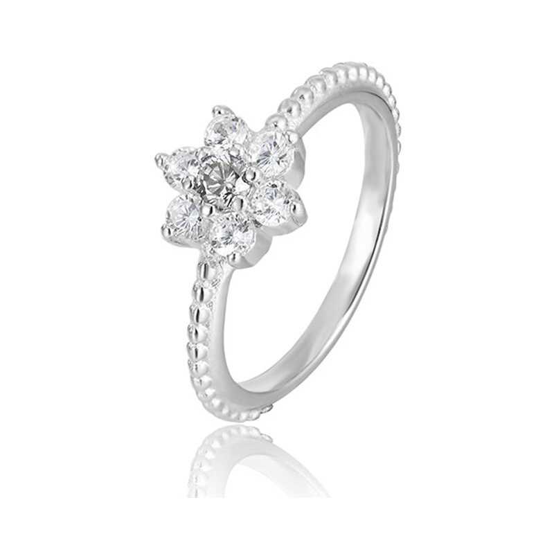Stříbrný prsten s kytičkou od značky Beneto je elegantním šperkem, který dokonale dotváří ženský vzhled. Tento designový kousek je vyroben z kvalitního stříbra 925/1000, které je díky rhodiování odolné vůči oxidaci a alergickým reakcím, což zajišťuje jeho dlouhou životnost a lesk. Prsten zdobí jemná kytička s čirými krystaly, jež symbolizují čistotu a krásu. Tento šperk je skvělou volbou pro každou příležitost, ať už se jedná o denní nošení nebo slavnostní události. Doporučuje se kombinovat s náušnicemi ze stejné kolekce pro ještě výraznější efekt.