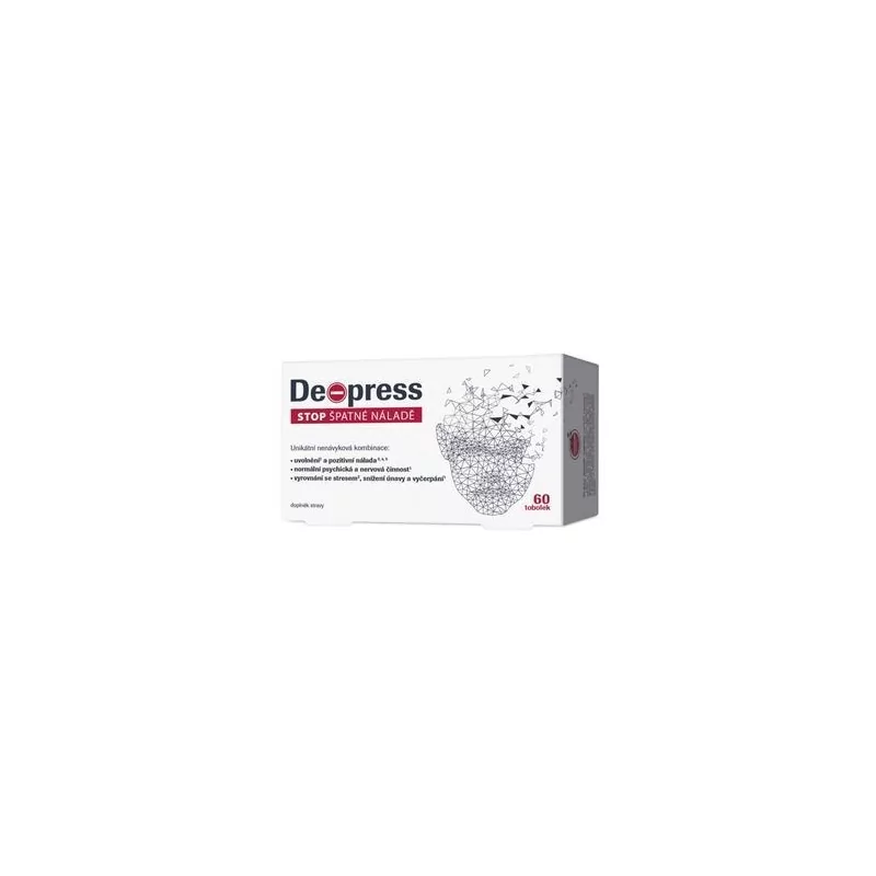 De-press je účinný doplněk stravy, který podporuje duševní pohodu a pomáhá vyrovnávat se se stresem. Obsahuje silnou dávku kozlíku lékařského, známého pro své relaxační účinky, a šafrán setý, který přispívá k dobré náladě. Unikátní složení je obohaceno o L-tryptofan, vitamín B6 a hořčík, které společně působí na snížení únavy a vyčerpání. Extrakty z meduňky lékařské a třezalky tečkované dále podporují kognitivní funkce a emocionální rovnováhu. De-press je ideální volbou pro ty, kteří hledají přirozenou cestu k duševní pohodě a kvalitnímu spánku. Užívejte 1–2 tobolky denně a objevte sílu přírody.