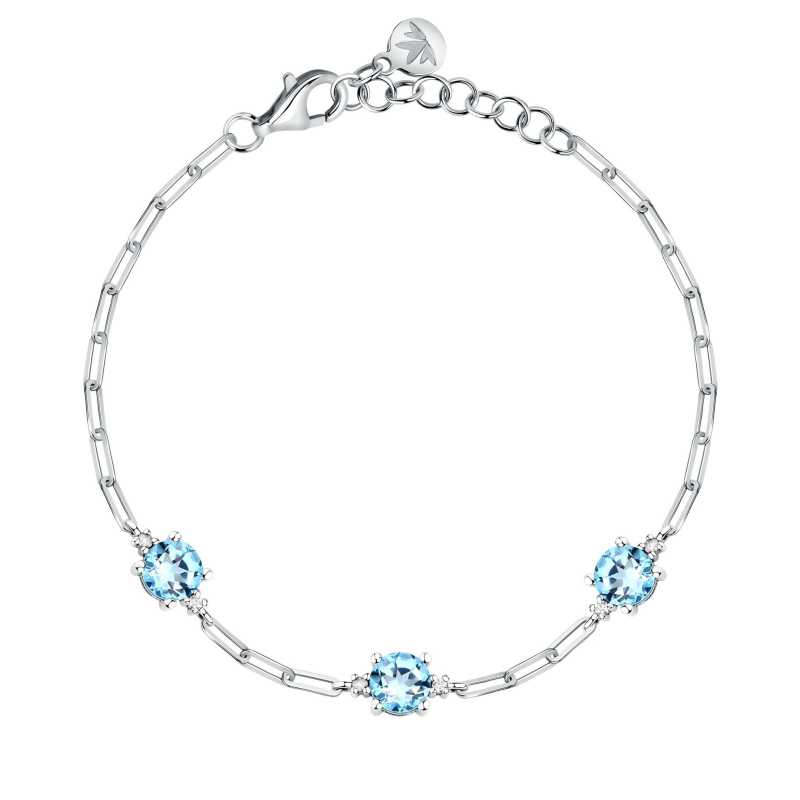 Elegantní dámský náramek od značky Morellato je dokonalým doplňkem pro každou ženu, která si potrpí na styl a kvalitu. Vyrobený ze sterlingového recyklovaného stříbra, náramek s rhodiovaným povrchem minimalizuje alergické reakce a zajišťuje trvalý lesk. Výrazné oválné články zdobí světle modré kubické zirkony, které se harmonicky doplňují s čirými zirkony po stranách. Délka náramku činí 19 cm s možností prodloužení o 3 cm, což zaručuje ideální přizpůsobení každému zápěstí. Klasické zapínání na karabinku zajišťuje bezpečnost nošení. Tento náramek je skvělým módním akcentem pro každou příležitost.