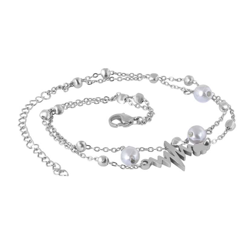 Dvojitý ocelový náramek na nohu od značky Troli spojuje moderní design s hlubokým významem. Jemný řetízkový styl je doplněn drobnými ocelovými kuličkami a perlami, zatímco přívěsek s EKG křivkou, zakončený srdíčkem, symbolizuje život a lásku. Tento elegantní šperk, vyrobený z kvalitní oceli, nabízí dokonalou kombinaci estetiky a výrazu. S nastavitelnou délkou 21+5 cm se snadno přizpůsobí každé noze. Náramek je dodáván v originálním balení, což z něj činí ideální dárek nebo osobní ozdobu. Vsaďte na kvalitu značky Troli a podtrhněte svou ženskost tímto jedinečným kouskem.