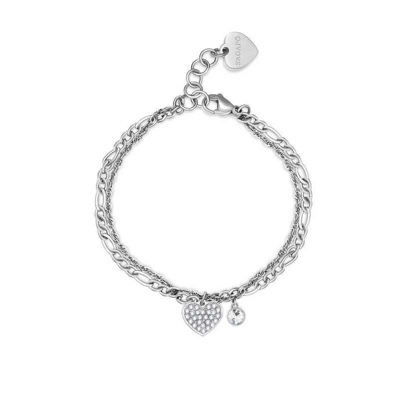 Dvojitý ocelový náramek s přívěsky Aurora od italské značky S'AGAPÕ přináší elegantní spojení moderního designu a smyslu pro detail. Srdíčkový přívěsek, zdobený čirými krystaly, vyzařuje jemnost a romantiku, zatímco druhý přívěsek z krystalu dodává šperku jedinečnost. Délka 18, 5 cm a bezpečné zapínání na karabinku zajišťují komfort při nošení. Tento náramek je ideálním doplňkem pro jakoukoli příležitost či jako symbol lásky a něhy. Kvalitní ocel s lesklou povrchovou úpravou zaručuje dlouhou životnost a nadčasový vzhled, který osloví každou ženu, jež se chce cítit výjimečně. Dodáváno v originálním balení, je skvělým dárkem pro vaše blízké.