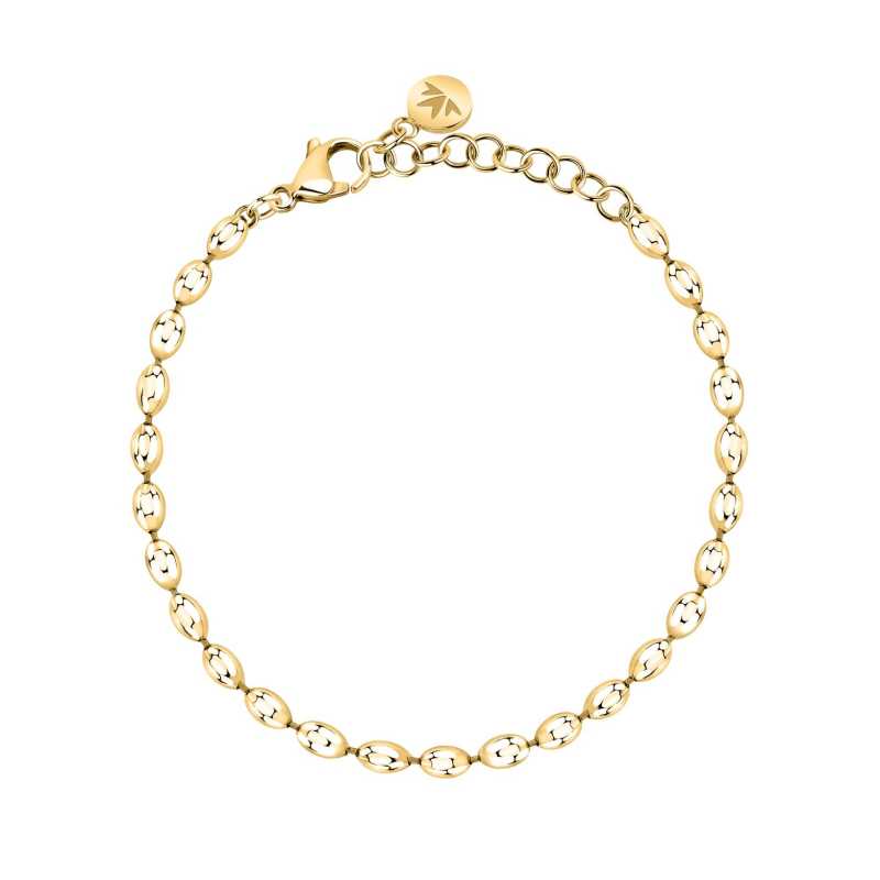 Dámský náramek Intrecci SAZC14 od značky Morellato je dokonalým doplňkem pro každou příležitost. Vyroben z kvalitní oceli a pokovený zlatým PVD povlakem, zaručuje dlouhotrvající lesk a odolnost. S délkou 19 cm a možností prodloužení o 3 cm se snadno přizpůsobí každému zápěstí. Elegantní články ve tvaru podlouhlých zrn vytvářejí jemný, ale výrazný efekt, který zaujme na první pohled. Zapínání na karabinku zajišťuje bezpečné nošení a minimalizuje riziko ztráty. Tento náramek je ideální volbou pro ženy, které hledají stylový a decentní šperk, jenž podtrhne jejich osobnost.