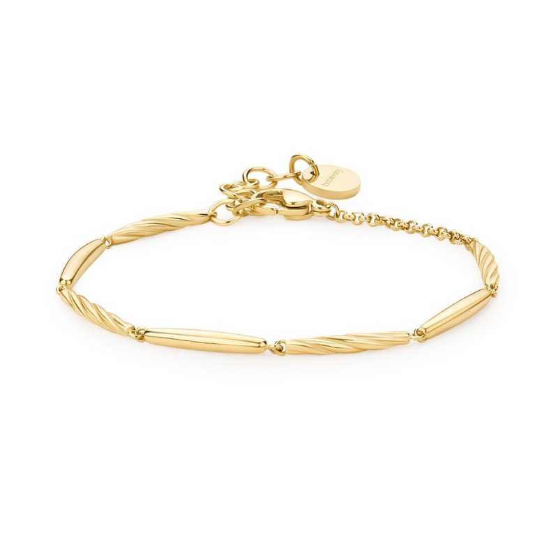 Elegantní pozlacený náramek Amy od značky Brosway je ztělesněním kvality a preciznosti. Vyroben z kvalitní oceli, je opatřen zlatým PVD povlakem, který zajišťuje nejen atraktivní vzhled, ale také odolnost vůči běžnému opotřebení. Délka náramku 18, 5 cm s praktickým zapínáním na karabinku umožňuje snadné nastavení. Pro zachování lesku doporučujeme náramek uchovávat v suchém prostředí a čistit jemným hadříkem. Italská výroba zaručuje vysokou úroveň zpracování a pozornost k detailům. Tento šperk se stane báječným doplňkem každého outfitu.