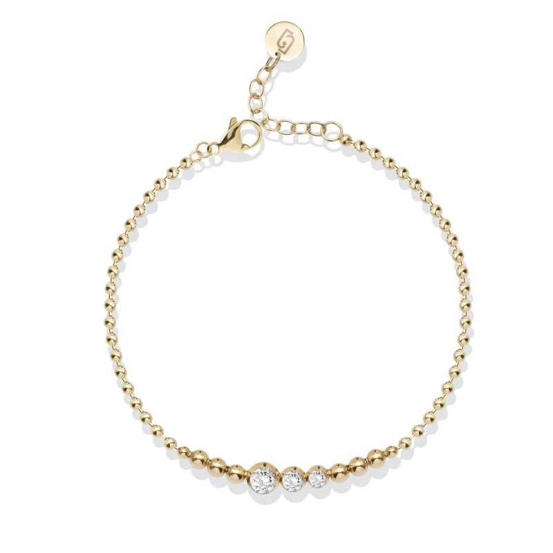 Elegantní kuličkový náramek značky Liu Jo přináší do vašeho šperkového arzenálu nezaměnitelný styl. Vyroben z kvalitní oceli a pozlacený žlutým PVD zlatem, náramek je nejen odolný, ale i nadčasový. Hlavní atrakcí jsou tři oslnivé kuličky osazené krystaly, které jemně odrážejí světlo a dodávají šperku luxusní nádech. Délka náramku činí 17 cm s možností prodloužení o 3 cm, což zajišťuje perfektní přizpůsobení každému zápěstí. Praktické zapínání na karabinku zaručuje snadné nošení. Ozdobte se kouskem, který podtrhne vaši osobnost a styl. Dodáván v originálním balení, je ideálním dárkem pro každou ženu.