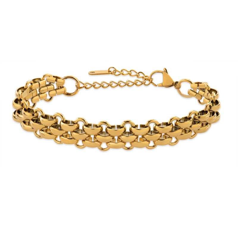 Masivní pozlacený náramek značky Troli představuje elegantní doplněk pro každého muže, který ocení kvalitu a styl. Vyrobený z odolné oceli, náramek je potažen žlutým zlatem, což mu dodává luxusní vzhled. Délka náramku činí 18, 5 cm, s možností prodloužení až o 5 cm, což zajišťuje perfektní přizpůsobení na každé zápěstí. Šířka řetízku 0, 134 cm vytváří jemný, avšak výrazný efekt, který přitahuje pozornost. Zapínání na karabinku zaručuje bezpečné nošení. Tento šperk je skvělou volbou pro každodenní nošení i speciální příležitosti. Dodáváno v originálním balení, ideální jako dárek.