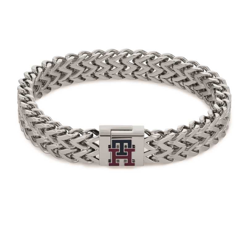 Dvojitý náramek pro muže od značky Tommy Hilfiger spojuje moderní design s nadčasovou elegancí. Vyrobený z kvalitní oceli, tento náramek s délkou 19 cm přináší masivní vzhled, který zaujme na první pohled. Magnetické zapínání, zdobené iniciály značky, zajišťuje nejen snadné nošení, ale i bezpečné uchycení. Minimalistický design bez kamínků v lesklém stříbrném provedení je ideální volbou pro každou příležitost, ať už jde o pracovní schůzku nebo volný čas. Tento šperk je dodáván v originálním balení, což z něj činí perfektní dárek pro muže, který ocení kvalitní a stylové doplňky.