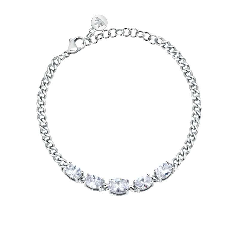 Moderní náramek Colori SAVY13 od značky Morellato je elegantním doplňkem, který dokonale podtrhne vaši osobnost. Vyrobený z kvalitní oceli s rhodiovaným povrchem, nabízí nejen krásu, ale i odolnost vůči alergickým reakcím. Šperk je osazen čirými kubickými zirkony, které se při každém pohybu jemně třpytí a dodávají náramku nádech luxusu. Délka 16 cm s možností prodloužení až o 3 cm zajišťuje pohodlné nošení. Zapínání na klasickou karabinku zaručuje bezpečnost a spolehlivost. Tento náramek je ideální volbou pro každou příležitost, která si žádá nádech elegance.