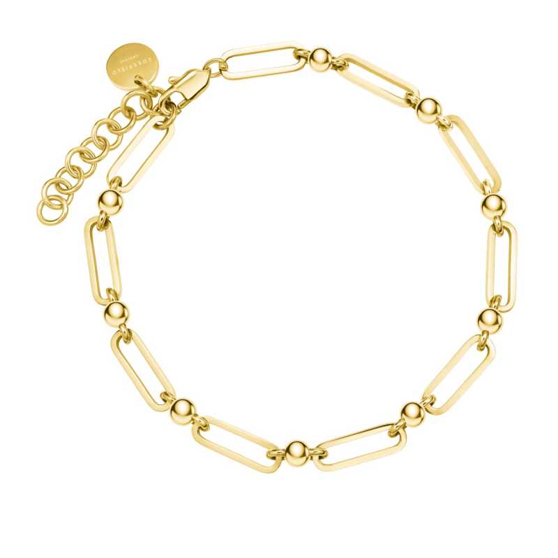Náramek Essentials JBMCG-J589 od značky ROSEFIELD je vyroben z kvalitní oceli a pozlacen 14karátovým žlutým zlatem, což mu dodává elegantní a nadčasový vzhled. Díky své povrchové úpravě v lesklém provedení je šperk odolný vůči každodennímu opotřebení a zachovává si svou krásu po dlouhou dobu. Pro maximální životnost se doporučuje vyhnout se kontaktu s vodou a chemikáliemi. Délka náramku činí 19, 5 cm s možností zkrácení o 3 cm a zapínání na výrazné očko zajišťuje pohodlné nošení. Pochází z dílny renomované značky, která klade důraz na kvalitu a preciznost zpracování.