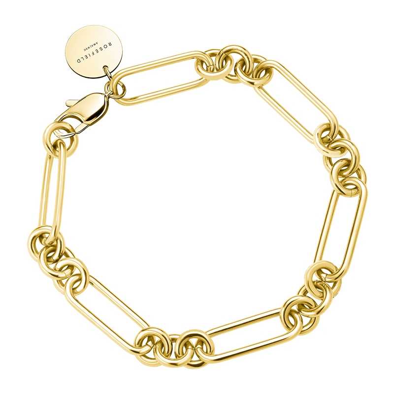 Moderní pozlacený náramek Essentials od značky Rosefield představuje elegantní spojení stylu a kvality. Vyrobený z vysoce kvalitní oceli a pozlacený 14karátovým žlutým zlatem, náramek nejenže okouzlí svým leskem, ale i robustními články, které zajišťují dlouhou životnost. S délkou 20 cm a praktickým zapínáním na karabinku se snadno navléká a dokonale doplní každý outfit. Tento šperk symbolizuje ženskou sílu a eleganci, proto jej můžete nosit při speciálních příležitostech i na každodenní nošení. Dopřejte si šperk, který přidá kouzlo vašemu stylu.