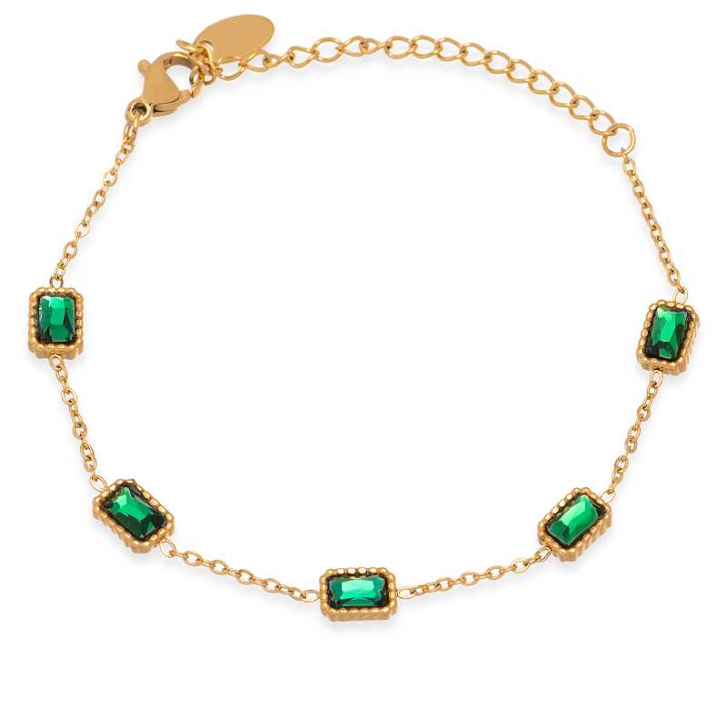 Tento okouzlující pozlacený náramek značky Troli je dokonalým doplňkem pro každou ženu, která ocení eleganci a styl. Vyrobený z kvalitní oceli a pozlacený žlutým zlatem, šperk vyzařuje luxus a jemnost. Dekorace v podobě úchvatných zelených krystalů dodává náramku oslnivý třpyt, který upoutá pozornost. Jeho délka 19 cm s možností prodloužení až o 4 cm zajišťuje dokonalé přizpůsobení každému zápěstí. Tento náramek symbolizuje harmonii a krásu, což z něj dělá ideální dárek pro výjimečné okamžiky. Originální balení podtrhuje jeho jedinečnost a kvalitu značky Troli.