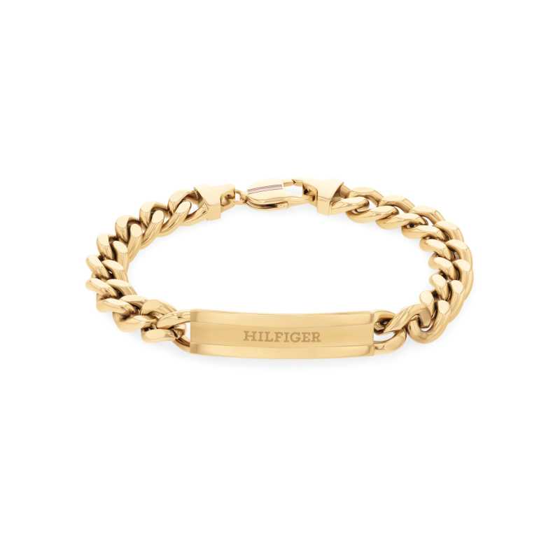 Originální pozlacený náramek značky Tommy Hilfiger je ztělesněním kvalitního designu a trvanlivosti. Vyroben z odolné oceli a ošetřen zlatým PVD povlakem, zajišťuje dlouhotrvající lesk a ochranu před poškrábáním. Pečujte o náramek pravidelným otřením jemným hadříkem, aby se zachoval jeho přirozený vzhled. Vhodný pro každodenní nošení, tento šperk skvěle doplní jakýkoliv outfit. Původ značky je zárukou prvotřídní kvality a elegance, která osloví každého muže. S délkou 19 cm a bezpečnostním zapínáním na karabinku se náramek snadno nosí a přizpůsobí se každému zápěstí.