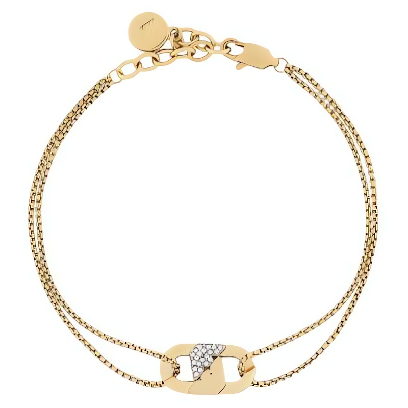 Pánský pozlacený náramek EGS3175710 od renomované značky Emporio Armani spojuje eleganci a moderní design. Vyrobený z kvalitní oceli a pozlacený zlatým PVD povlakem, přináší do vašeho šatníku nádech luxusu. Ozdoba ve tvaru loga značky, doplněná precizně vybroušenými čirými krystaly, vytváří oslnivý třpyt, který zaujme na první pohled. Jeho sofistikovaný styl je ideální pro muže, kteří si cení detailů a chtějí vyniknout. Náramek v originálním balení je skvělým dárkem pro každou příležitost a dokonalým doplňkem k oblečení pro každodenní nošení či speciální události.