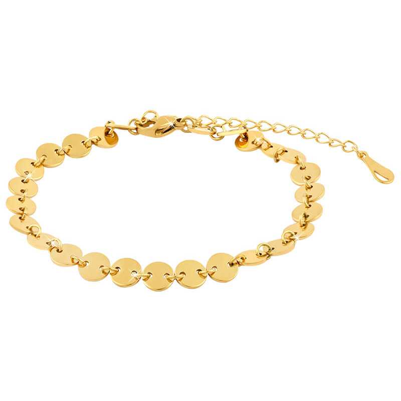 Penízkový náramek z pozlacené oceli značky Troli je dokonalým doplňkem pro každou ženu, která hledá elegantní a nadčasový šperk. S délkou 17 cm a prodloužením 5 cm se skvěle přizpůsobí každému zápěstí. Kombinace kvalitní pozlacené oceli a minimalistického designu, složeného z drobných penízků, dodává náramku jedinečný charakter. Lesklý povrch podtrhuje jeho luxusní vzhled, zatímco zapínání na karabinku zaručuje snadné nošení. Tento šperk nejenže zvýrazní vaši osobnost, ale také se stane perfektním dárkem pro vaše blízké. Dodává se v originálním balení, což jej činí skvělým výběrem pro jakoukoli příležitost.
