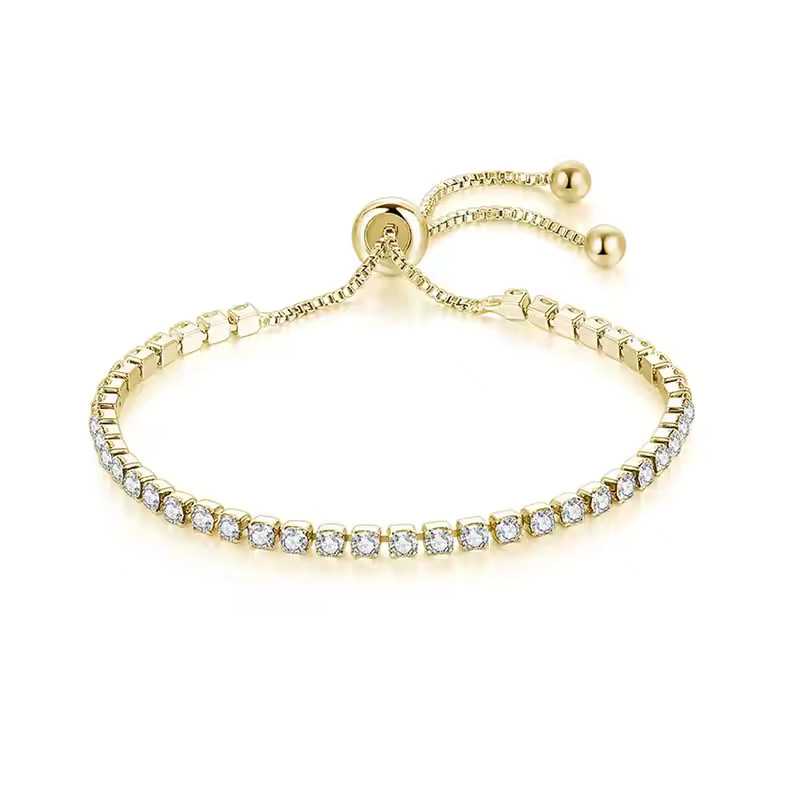Třpytivý pozlacený náramek od značky Troli je ideálním doplňkem pro každou ženu, která chce podtrhnout svou eleganci a šarm. Vyrobený z kvalitního pozlaceného kovu, náramek oslní vybroušenými zirkony, které mu dodávají jedinečný lesk. Díky praktickému posuvnému systému se snadno přizpůsobí jakémukoliv zápěstí, a tím zaručuje maximální pohodlí při nošení. Délka náramku činí 16 cm, s možností prodloužení až o 9 cm. Tento nadčasový šperk se skvěle hodí pro každou příležitost a dodá vašemu vzhledu šmrnc. Dodáván je v elegantním originálním balení, ideální jako dárek.