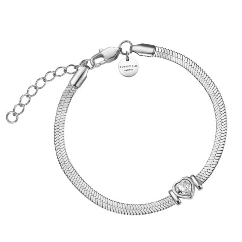 Elegantní ocelový náramek Hádek od značky Rosefield představuje dokonalou kombinaci stylu a symboliky. Jeho minimalistický design spojuje kvalitní rhodiovanou ocel a třpytivý krystal ve tvaru srdce, což z něj činí ideální doplněk pro každou ženu, která chce vyjádřit svou romantickou povahu. Délka náramku 19, 5 cm s možností prodloužení zajišťuje pohodlné nošení. Tento šperk nejenže skvěle doplní váš outfit, ale také symbolizuje lásku a blízkost, což ho činí skvělým dárkem pro vaše blízké. S jeho lesklým povrchem a kvalitním zpracováním zazáříte v každé situaci.