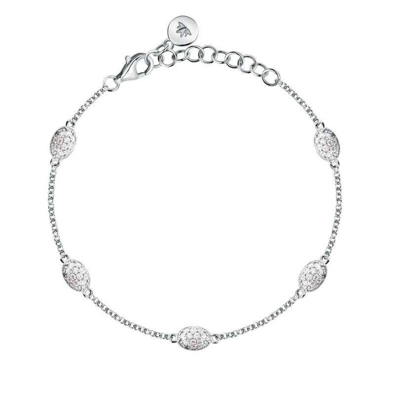Elegantní stříbrný náramek od značky Morellato je ideálním doplňkem pro každou ženu, která ocení kvalitní design a jemnou krásu. Tento šperk je vyroben ze sterlingového recyklovaného stříbra s rhodiovaným povrchem, což zajišťuje nejen dlouhotrvající lesk, ale i minimalizaci alergických reakcí. Náramek je bohatě zdoben oválnými ozdobami osazenými čirými kubickými zirkony, jež dodávají šperku sofistikovaný vzhled. S délkou 16 cm a možností prodloužení o 3 cm se snadno přizpůsobí každému zápěstí. Zapínání na klasickou karabinku zaručuje bezpečné nošení. Tento náramek se stane dokonalým společníkem pro každou příležitost.