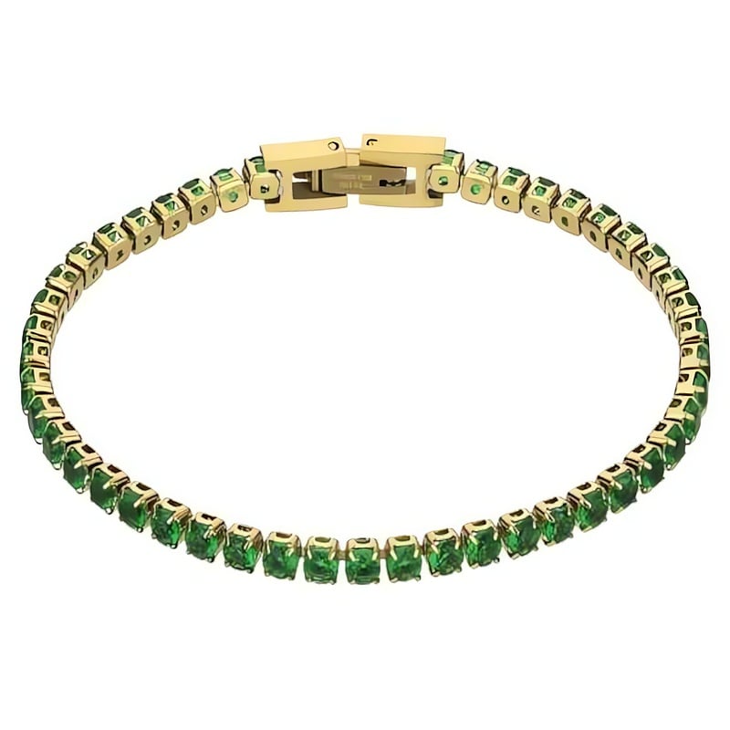 Elegantní tenisový náramek Tessa Green Bracelet od značky Marc Malone spojuje nadčasový design s moderními prvky. Tento šperk, vyrobený z kvalitní oceli a pozlacený 18k zlatým PVD povlakem, přináší do vašeho šperkového arzenálu jedinečnou jiskru. Zelené zirkony oslnivě třpytí a podtrhují rafinovanost každého outfitu. Náramek má délku 16 cm a jeho jemná šířka 0, 2 cm vytváří dokonalou harmonii mezi elegancí a decentností. Tessa Green Bracelet je víc než jen módní doplněk; symbolizuje sílu a ženskost s nádechem luxusu. Dodáváno v originálním balení, představuje ideální dárek pro výjimečné příležitosti.