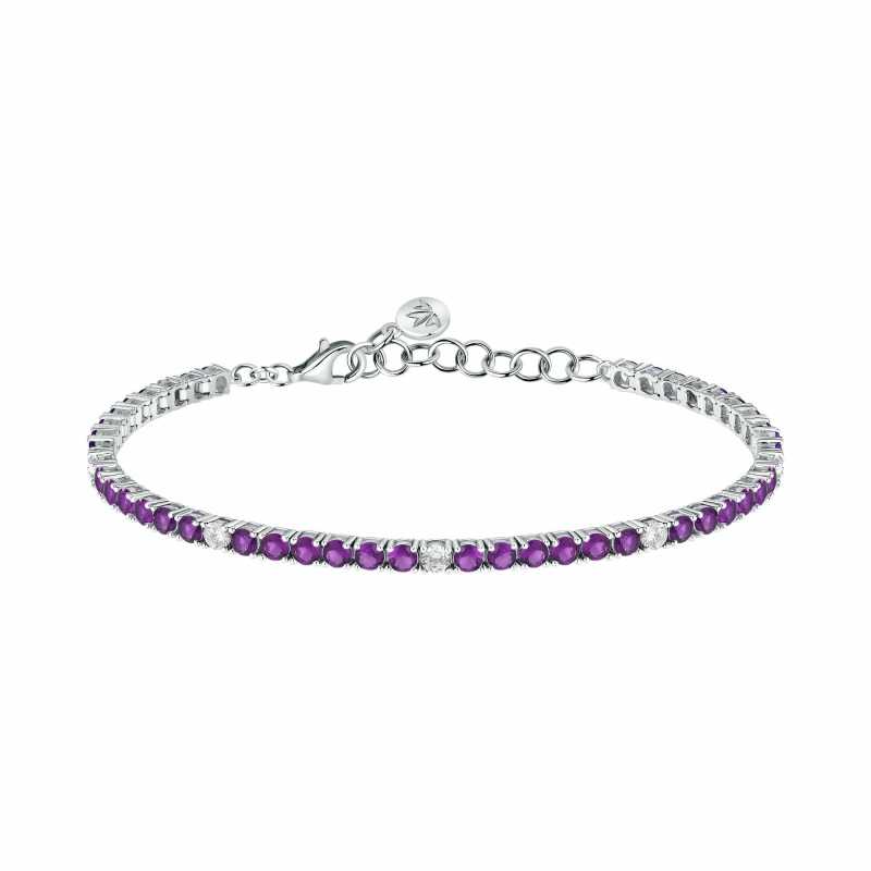 Tenisový stříbrný náramek se zirkony Tesori od značky Morellato spojuje eleganci s nadčasovým designem. Tento jemný dámský šperk je vyroben z kvalitního stříbra 925/1000 a zdoben precizně broušenými kubickými zirkony v čiré a fialové barvě. Délka náramku je 18, 5 cm s možností prodloužení o 3 cm, což zaručuje pohodlné nošení. Bezpečnostní karabinkové zapínání dodává jistotu při každém pohybu. Tento náramek symbolizuje ženskost a sebevědomí, ideální pro každou příležitost. Šperky Morellato jsou dodávány v originálním balení, což z nich činí skvělý dárek pro výjimečné okamžiky.