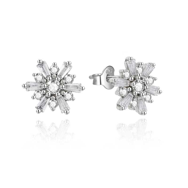 Náušnice značky Beneto jsou vyrobeny z kvalitního sterlingového stříbra s ryzostí 925/1000. Rhodiovaný povrch zajišťuje dlouhotrvající lesk a minimalizuje riziko alergických reakcí. Design inspirovaný přírodou, připomínající sněhovou vločku, je osazen čirými zirkony, které dodávají šperkům jedinečný třpyt. Pro zachování krásy doporučujeme uchovávat náušnice v suchu a chránit je před agresivními chemikáliemi. Díky preciznímu zpracování a kvalitním materiálům je tento šperk nejen elegantním doplňkem, ale i trvalou investicí do vašeho stylu.