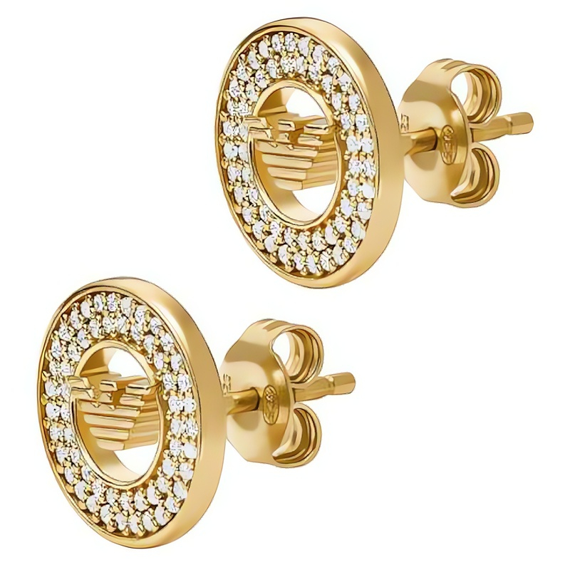 Elegantní pozlacené náušnice od značky Emporio Armani dodají každému outfitu šmrnc a sofistikovanost. Vyrobené z kvalitního stříbra o ryzosti 925/1000 a potažené PVD vrstvou žlutého zlata, tyto náušnice vynikají svojí nadčasovou kruhovou formou. Drobné čiré kubické zirkony dokonale odrážejí světlo a vytvářejí oslnivý efekt, který podtrhuje ženskou krásu. Bezpečnostní zapínání na puzetku zajišťuje komfort a zabraňuje ztrátě. Tento šperk, dodávaný v originálním balení, je ideálním dárkem pro každou ženu, která ocení eleganci a kvalitu. Ozdobte své uši tímto jedinečným kouskem a nechte se okouzlit jeho krásou.
