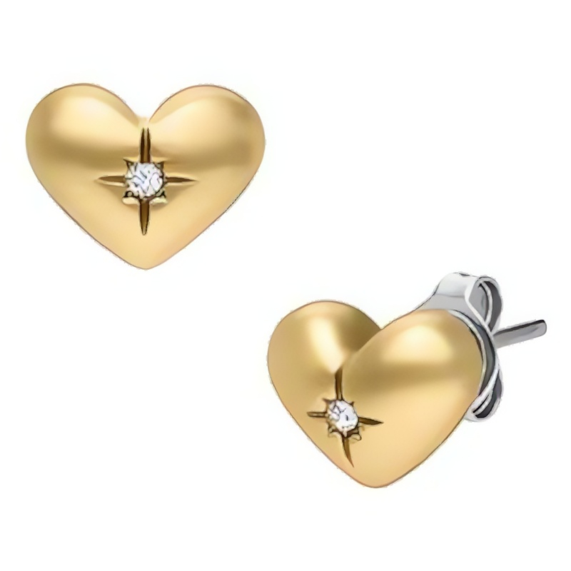 Romantické pozlacené náušnice ve tvaru srdce od značky Fossil reprezentují spojení kvality a elegance. Vyrobeny jsou z kvalitní oceli, která zajišťuje odolnost a dlouhou životnost. Povrchová úprava lesklým pozlacením dodává náušnicím atraktivní vzhled a chrání je před oxidací. Skleněné kamínky vnášejí do designu třpyt a jemnost, ideální pro každou příležitost. Pro zajištění jejich krásy se doporučuje vyhýbat se kontaktu s vodou a chemikáliemi. Značka Fossil je známá svým důrazem na detail a kvalitu, což zaručuje spokojenost každé nositelky.