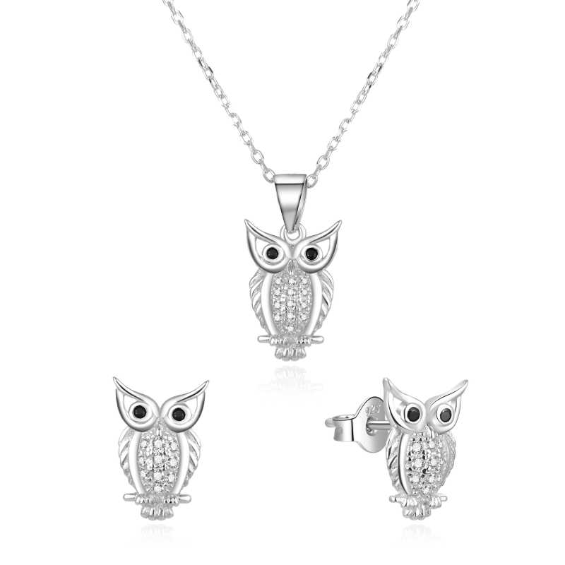Tato elegantní stříbrná souprava šperků s motivem soviček od značky Beneto je ideálním doplňkem pro každou ženu, která ocení jemnost a styl. Vyrobena z kvalitního rhodiovaného stříbra, souprava minimalizuje alergické reakce a udržuje trvalý lesk. Náhrdelník s délkou 42 + 5 cm a peckové náušnice jsou zdobeny čirými zirkony, které dodávají celému setu oslnivý třpyt. Oči soviček jsou pokryty černým smaltem, což podtrhuje jejich roztomilý vzhled. S touto soupravou vykouzlíte úsměv na tváři v každé situaci. Doporučuje se zakoupit dárkovou krabičku pro dokonalý dárek.