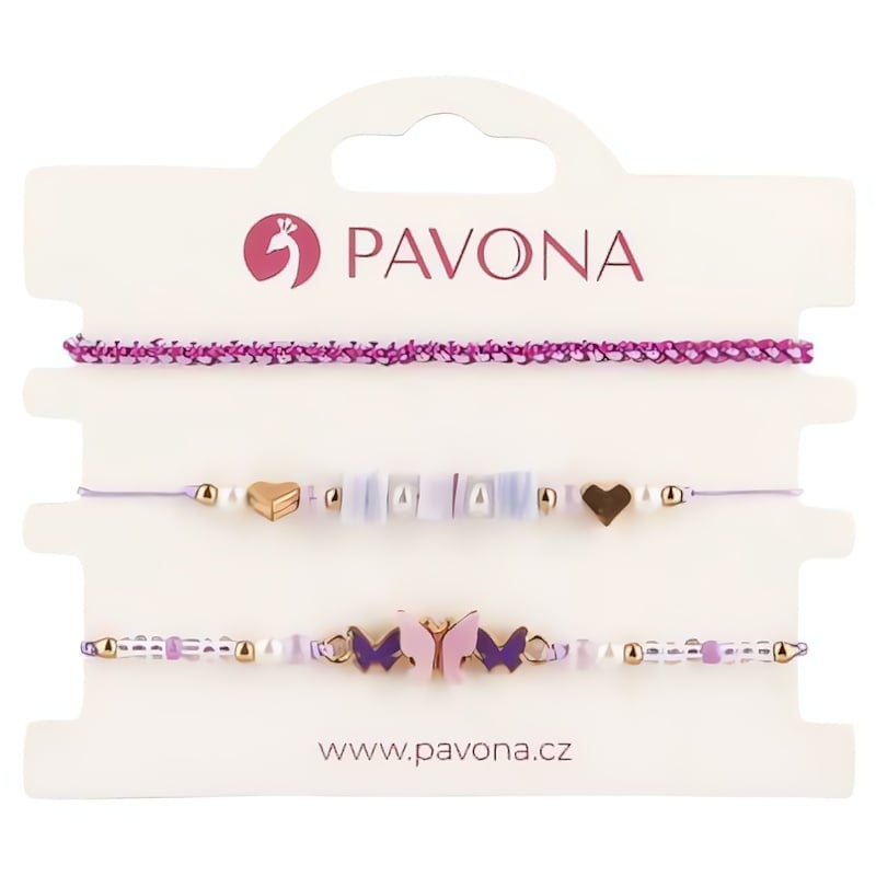 Sada barevných náramků 53024. 3 od značky Evolution Group představuje dokonalou kombinaci elegance a hravosti. Tři náramky, vyrobené z kvalitních materiálů, jako jsou syntetické perly a smalt, nabízejí široké možnosti nošení. Proplétaný textilní náramek elegantně kontrastuje s dvěma náramky zdobenými korálky ve fialové, bílé a růžové barvě, čímž navozuje atmosféru radosti a kreativity. Tato souprava může symbolizovat spojení s přírodou, zejména díky motivu motýla, který je ztělesněním proměny a svobody. Díky variabilitě velikostí 16–29 cm si každý může najít ten správný fit. Náramky lze nosit samostatně nebo dohromady, což podtrhuje individuální styl nositele. Originální balení činí z této soupravy ideální dárek pro každou příležitost.