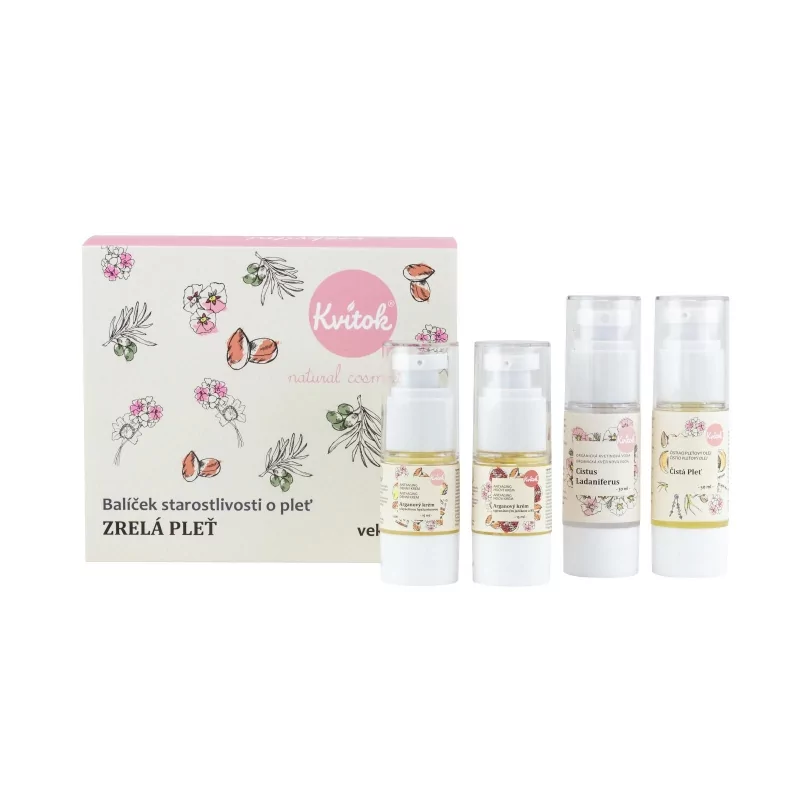 Kvitok Balíček péče o zralou pleť je první slovenská, ručně vyráběná přírodní kosmetika, která spojuje kvalitu, jednoduchost a účinnost. Výrobky jsou inspirovány přírodou a vědeckými poznatky, aby poskytovaly skutečné výsledky. Zakladatelkou značky je Ing. Martina Dudová, PhD., vášnivá odbornice s lékařským a chemickým vzděláním. Vývoj receptur probíhá ve spolupráci s dermatology, aby byly výrobky opravdu funkční. Kvitok je certifikován Cruelty Free International Leaping Bunny, což zaručuje, že výrobky nejsou testovány na zvířatech. Skladujte v suchu a temnu a dopřejte své pleti péči, která je šetrná k životnímu prostředí i k Vaší kráse.