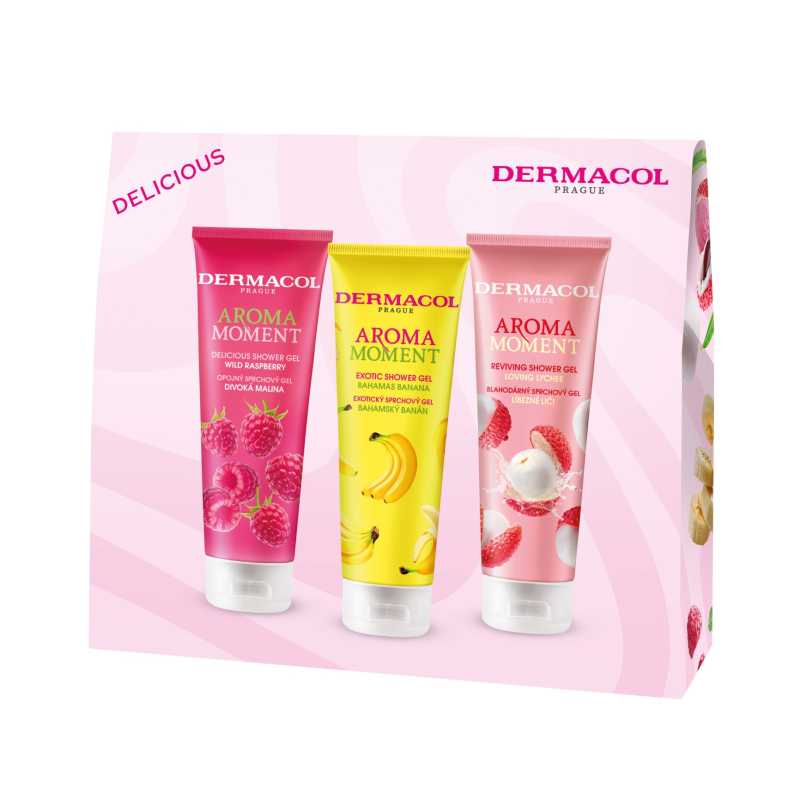 Dárková sada Aroma Moment Mix Fruit od značky Dermacol přináší jedinečný zážitek z péče o tělo. Obsahuje tři exotické sprchové gely, které jemně čistí pokožku a zanechávají ji vláčnou a voňavou. Sprchový gel s vůní divoké maliny přináší osvěžení a vzpomínky na letní dny, zatímco tropický gel s banánem vás přenese do ráje sladkých chutí. Osvěžující gel s líči dodává pokožce hebkost a osvěžení. Všechny gely vytvářejí jemnou pěnu a jsou ideální pro každodenní použití. Dopřejte si chvíle relaxace a potěšení s touto dárkovou sadou, která je skvělým dárkem pro každou ženu.