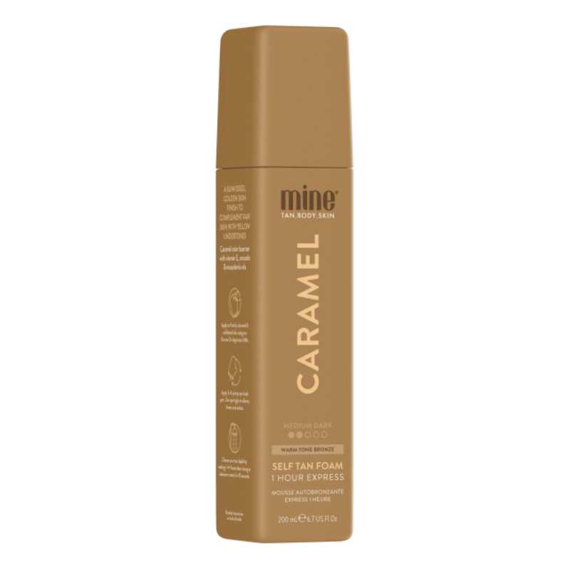Samoopalovací pěna Caramel přináší přirozený zlatavý tón pleti, ideální pro světlou až střední pleť. Díky unikátní Quad-bronzer technologii se vyhnete oranžovým podtónům a dosáhnete rovnoměrného opálení bez šmouh. Obsahuje dihydroxyacetone (DHA) pro dlouhotrvající efekt a přírodní karamelové pigmenty, které okamžitě zkrášlí vaši pleť. Bohatá směs olejů, včetně arganového a jojobového, zajišťuje hydrataci a ochranu, zatímco okurkový extrakt pleť osvěžuje. Aplikace je snadná a příjemná díky jemné vůni. Výsledek se vyvíjí během 24 hodin a vydrží 7–14 dní.