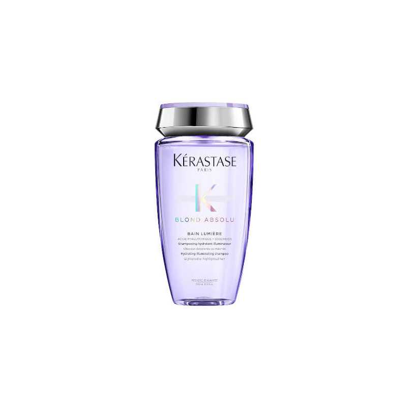 Hydratační a rozjasňující šampon Blond Absolu Bain Lumiére je ideálním řešením pro zesvětlené a melírované vlasy. Tento šampon šetrně myje a zároveň pečuje o blond odstíny, dodává jim oslnivý lesk a intenzivní hydrataci. Obsahuje kyselinu hyaluronovou, která zaceluje a vyživuje vlasové vlákno, a květ plesnivce alpského, jenž zjemňuje a zklidňuje citlivé vlasy. Jeho každodenní použití chrání barvu a zajišťuje, že vlasyzůstanou zdravé a plné života. Aplikujte na mokré vlasy, napěňte a důkladně opláchněte. Dopřejte svým vlasům luxusní péči, kterou si zaslouží.