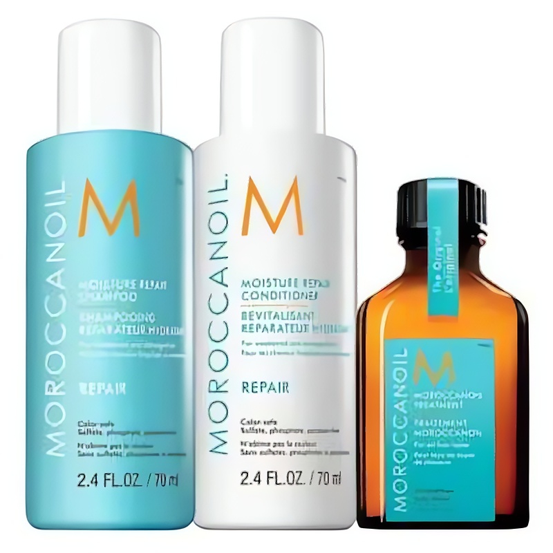 Dárková sada vlasové péče Repair od značky MOROCCANOIL je ideálním řešením pro oslabené a poškozené vlasy. Obsahuje regenerační šampon a kondicionér s arganovým olejem, které jemně čistí a vyživují vlasy, zatímco keratin a mastné kyseliny zacelují vlasové vlákno. Tato sada také zahrnuje univerzální vlasovou kúru, jež dodává hebkost a lesk, a chrání vlasypřed vnějšími vlivy. Bez obsahu sulfátů, fosfátů a parabenů, je vhodná pro všechny typy vlasů. Dopřejte svým vlasům intenzivní hydrataci a regeneraci, kterou si zaslouží. Vytvořte si krásné a zdravé vlasy s touto výjimečnou sadou.