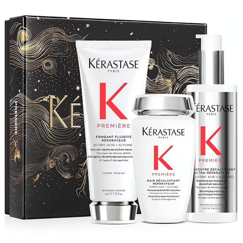 Dárková sada vlasové péče Premiére Fondant Holiday Set je ideálním řešením pro obnovu poškozených vlasů. Obsahuje obnovující šampon, předšamponovou péči a kondicionér, které společně regenerují vlasy a dodávají jim zdravý vzhled. Šampon bez sulfátů jemně čistí a odstraňuje usazeniny vápníku, zatímco kyselina citrónová a glycin v předšamponové péči obnovují strukturu vlasů a zvyšují jejich sílu. Kondicionér pak zajišťuje hebkost a lesk, čímž eliminuje lámavost a matnost. Pravidelným používáním se vlasy stávají pružnějšími a snadno upravitelnými. Dopřejte svým vlasům luxusní péči s touto dárkovou sadou.