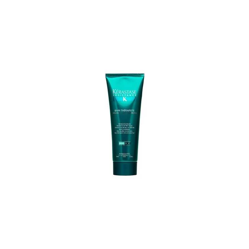 Kérastase Resistance Thérapiste Bain Thérapiste je šampon určený pro velmi poškozené vlasy, který přináší intenzivní regeneraci a obnovu. Jeho unikátní složení s aktivními látkami FIBRA-KAP™ a Sève de Résurrection pomáhá obnovit chybějící proteiny, revitalizuje vlasy a zvyšuje jejich pružnost. Tento šampon je ideální volbou po chemických úpravách, kdy vlasy potřebují zvláštní péči. Při pravidelném používání se vlasy stávají silnějšími a lépe chráněnými před dalším poškozením. Dopřejte svým vlasům luxusní péči, kterou si zaslouží, a užijte si zdravý vzhled a krásu.