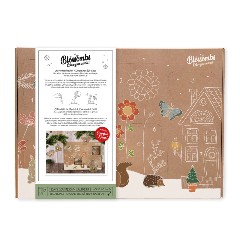 Dárková sada vánočních ozdob Blossombs přináší jedinečný způsob, jak oslavit svátky s ohledem na přírodu. Sada obsahuje 7 semínkových bomb, které nejenže ozdobí váš stromeček, ale také poslouží jako originální vánoční přání a visačky na dárky. Každá kulička je vyrobena z přírodního jílu a ukrývá semínka BIO divokých květin, jako je vlčí mák nebo chrpa. Po vykvetení vytvoří krásnou louku, která podpoří místní biodiverzitu a přiláká motýly. Tento ekologický dárek je ideální volbou pro ty, kteří chtějí spojit radost z Vánoc s péčí o životní prostředí.