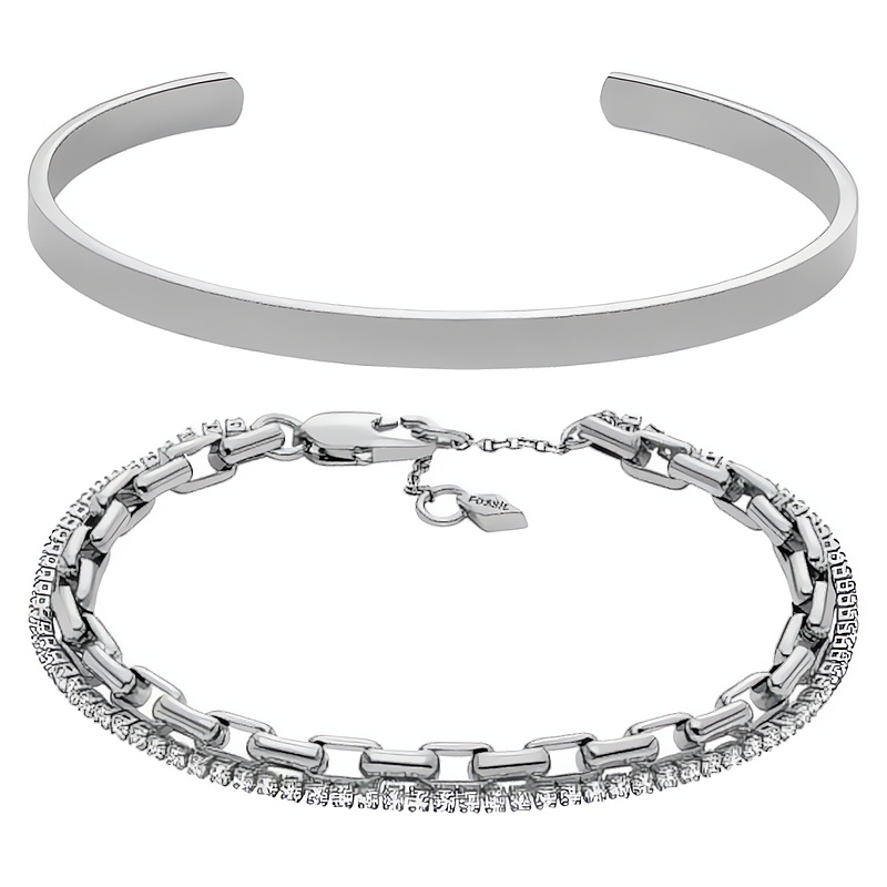 Elegantní set dámských náramků JGFTSET1104 od značky Fossil je dokonalým doplňkem pro každou ženu, která si potrpí na styl a kvalitu. Tento set zahrnuje pevný náramek v otevřeném provedení a jemný řetízkový náramek posetý čirými krystaly, které dokonale odrážejí světlo a dodávají šperku nádech luxusu. Délka pevného náramku je 17 cm, zatímco řetízkový náramek má délku 21, 5 cm a je opatřen klasickou karabinkou pro snadné zapínání. Vyrobený z kvalitní mosazi a krystalů, tento set nejen skvěle doplní jakýkoliv outfit, ale také se dodává v originálním balení, což z něj činí skvělý dárek pro vaše blízké.
