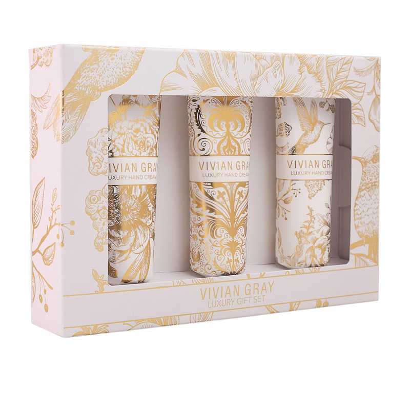 Dárková sada krémů na ruce White Velvet Set od značky Vivian Gray přináší dokonalou péči pro vaše ruce. Obsahuje tři luxusní krémy na ruce o objemu 50 ml, které poskytují intenzivní hydrataci a výživu. Díky svému jedinečnému složení zanechávají pokožku jemnou, hladkou a pružnou. Příjemná vůně dodává pocit svěžesti a elegance. Tento veganský produkt je ideálním dárkem pro každou ženu, která ocení kvalitní péči o pleť. Použití je jednoduché: stačí nanést krém na ruce a jemně vmasírovat. Dopřejte svým rukám to nejlepší s touto exkluzivní sadou.