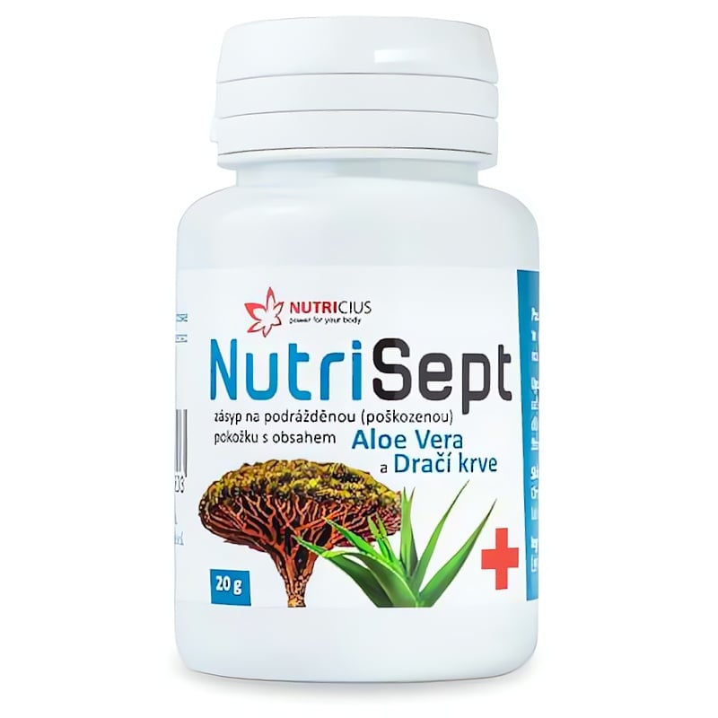 NutriSept je účinný zásyp určený pro zklidnění a regeneraci podrážděné pokožky. Obsahuje vysoce kvalitní extrakt z Aloe Vera a Dračí krve, které jsou známé pro své regenerační vlastnosti. Aloe Vera pomáhá udržovat hydrataci a podporuje hojení, zatímco Dračí krev přispívá k ochraně a revitalizaci pokožky. Přípravek je vhodný pro každodenní použití, stačí aplikovat v dostatečné vrstvě na postižené místo a opakovat podle potřeby. NutriSept je ideální volbou pro všechny, kteří hledají přírodní cestu k péči o svou pokožku. Balení obsahuje 20 g produktu, který je snadno přenosný a praktický.